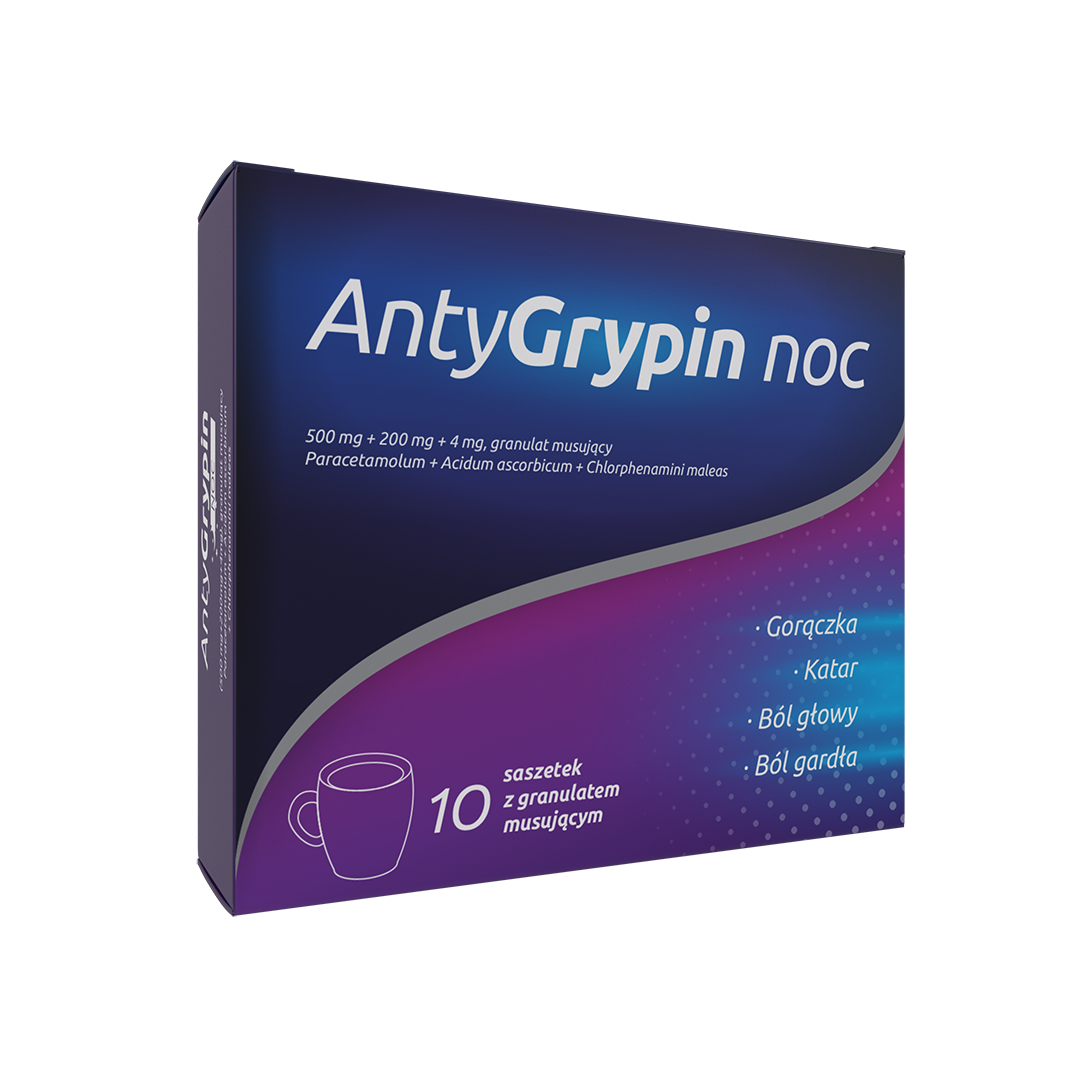 Antygrypin noc, Zdrovit - 10 saszetek z granulatem musującym - GORĄCZKA, KATAR, BÓLE GŁOWY, BÓLE GARDŁA