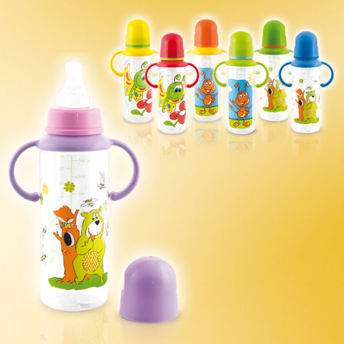 strona główna » dla dzieci » przydatne dla dzieci » butelki, podgrzewacze pokarmu » Al Bis Butelka profilowana okrągła z dekorem z uchwytem A0013 - 250 ml