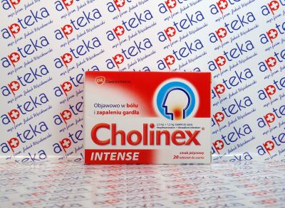 Tabletki do ssania Cholinex Intense stosuje się objawowo w bólu i zapaleniu gardła.