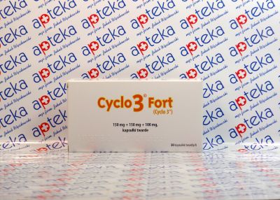 Cyclo 3 Fort 150 mg w formie kapsułek to preparat adresowany do osób uskarżających się na dolegliwości i schorzenia ze strony naczyń żylnych, problemy z krążeniem, z bolesnością, ociężałością, opuchnięciem nóg, w przypadku żylaków konczyn dolnych oraz odbytu. Zawarta w kapsułkach Cyclo 3 Fort substancja czynna - hesperedyna - uszczelnia, wzmacnia i chroni naczynia żylne, ma pozytywmy wpływ na przepływ krwi w żyłach, zmniejszenie obrzęku i bolesności nóg, zminimalizowanie dolegliwości hemoroidalnych. Cyclo 3 Fort zaleca się poza tym w przypadku krwawień z kobiecych narządów rodnych spowodowanych zażywaniem doustnej antykoncepcji bądź w efekcie założenia wkładki domacicznej.