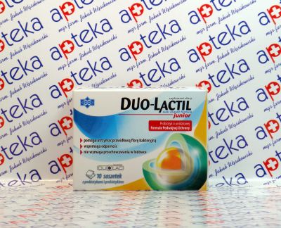 Duo-Lactil® Junior to suplement diety zawierający 5 szczepów bakterii: Lactobacillus acidophilus Streptococcus thermophilus, Bifidobacterium lactis, Bifidobacterium longum, Lactobacillus rhamnosus i Fruktooligosacharydy.