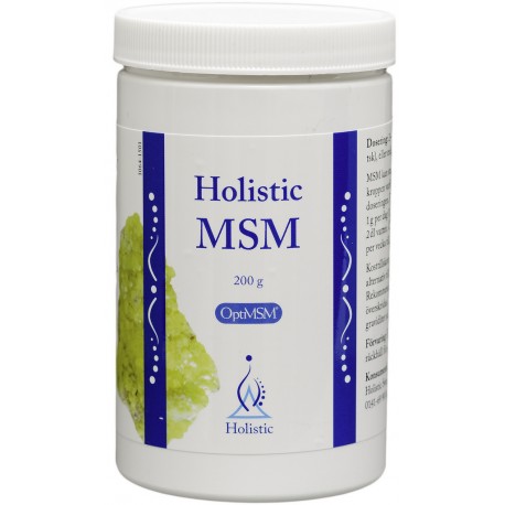 Holistic MSM jest suplementem diety zawierającym MSM które jest naturalnie występującym organicznym związkiem siarki obecnym w zbożach, roślinach strączkowych, jajach, czerwonym mięsie a także naturalnie występuje w organizmie. MSM jest składnikiem kolagenu - białka, które tworzy tkankę łączną, mięśnie, kości, skórę i włosy. MSM jest szczególnie polecany osobom starszym oraz aktywnym fizycznie.