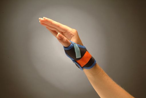 Orteza wykoanana jest z materiału o "żywym" atrakcyjnym dla dzieci kolorze. Zapewnia stabilizację i usztywnienie kciuka oraz stawu nadgarstkowo-śródręcznego kciuka.