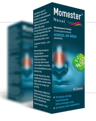 Momester Nasal. Skład i postać: Aerozol do nosa, zawiesina. Każda dawka zawiera mometazonu furoinian jednowodny odpowiadający 50 mikrogramom mometazonu furoinianu. Substancja pomocnicza o znanym działaniu: jedna dawka produktu leczniczego zawiera 20 mikrogramów benzalkoniowego chlorku. Wskazania: Produkt jest wskazany w leczeniu objawów zdiagnozowanego przez lekarza sezonowego alergicznego zapalenia błony śluzowej nosa u osób dorosłych w wieku od 18 lat. Przeciwwskazania: Nadwrażliwość na substancję czynną lub na którąkolwiek substancję pomocniczą. Produktu nie należy stosować w przypadku nieleczonych miejscowych zakażeń błony śluzowej nosa, takich jak opryszczka pospolita. Nie należy stosować kortykosteroidów do nosa u pacjentów, którzy niedawno przebyli zabiegi chirurgiczne nosa lub urazy nosa, aż do czasu zagojenia się ran, ze względu na hamujące działanie kortykosteroidów na proces gojenia ran. Podmiot odpowiedzialny: ZF Polpharma S.A. Dodatkowych informacji o leku udziela: Polpharma Biuro Handlowe Sp. z o.o., ul. Bobrowiecka 6, 00-728 Warszawa, tel. +48 22 364 61 00; fax. +48 22 364 61 02. www.polpharma.pl. ChPL: 2019.06.25.