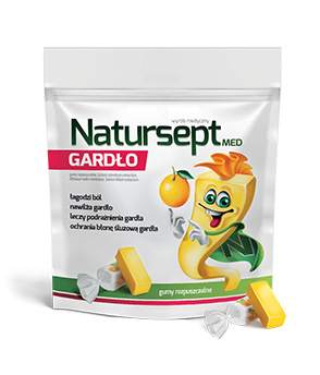 Wyrób medyczny Natursept med gardło gumy rozpuszczalne dzięki właściwościom powlekającym: