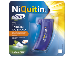 Niquitin Mini z dawką nikotyny 4 mg stworzony został z myślą o osobach noszących się z zamiarem rzucenia nałogu palenia, przy czym ich maksymalna ilość wypalanych dotąd dziennie papierosów wynosiła około 20 sztuk, a pierwszy w ciągu dnia papieros zapalny był około pół godziny po przebudzeniu się. Niquitin Mini 4 mg ma postać tabletek do ssania, których zażywanie powoduje stopniowe uwalnianie się z tabletki nikotyny, kojąc głód nikotyny po odstawieniu papierosów. Jedną tabletkę można ssać około 10 minut, przy czym już po 5 minutach nikotynowy głód zostaje wyciszony, pozostawiając przy tym w jamie ustnej świeży, miętowy aromat.