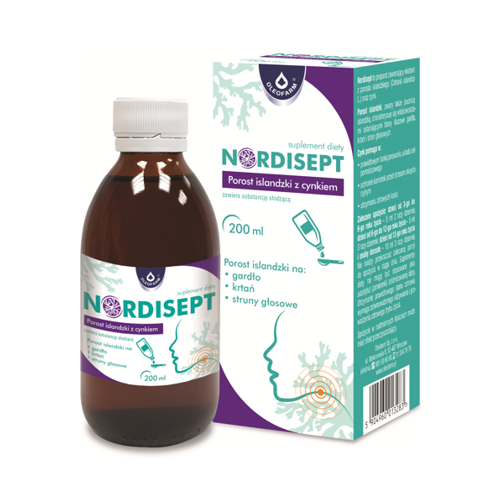 Nordisept to preparat zawierający wyciąg z porostu islandzkiego (Cetraria islandica L.) oraz cynk.