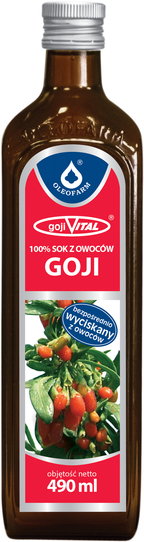 Goji (kolcowój szkarłatny - Lycium barbarum L.) to roślina uprawiana w południowej części Azji. Naturalny sok z owoców goji jest źródłem witaminy C, która pomaga w prawidłowym funkcjonowaniu układu odpornościowego oraz nerwowego, przyczynia się do zmniejszenia uczucia zmęczenia i znużenia oraz chroni komórki przed stresem oksydacyjnym.