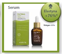 Pielegnacja z uzyciem kremu i serum Factor G zwieksza synteze kolagenu i elastyny o ponad 76%.