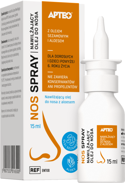strona główna » przeziębienie » katar, zatkany nos » Nos Spray, nawilżający olej do nosa, Apteo Care - 15 ml