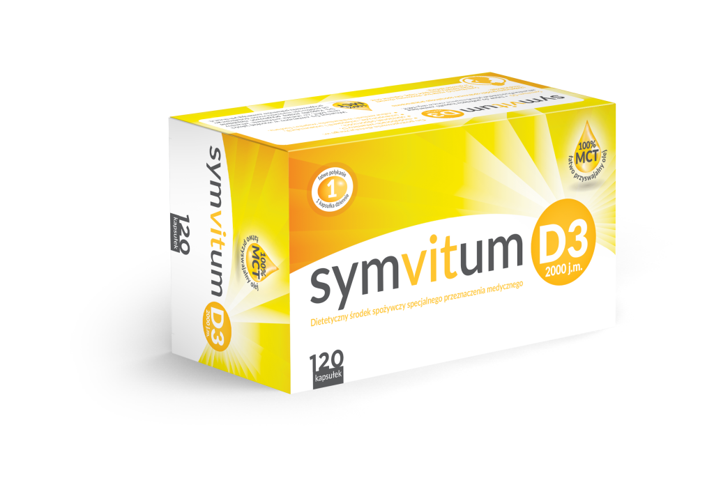 Symvitum D3 - kapsułki zawierające witaminę D3 (cholekalcyferol) rozpuszczoną w oleju MCT.