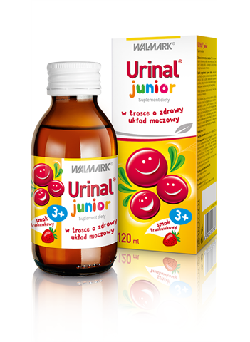 Urinal Junior to suplement diety w płynie zawierający unikalną kompozycję składników, na które składają się: ekstrakty roślinne (żurawina i brzoza), a także d-mannoza, biotyna, cynk. Urinal Junior to jedyny tak kompleksowy preparat, którego składniki skutecznie wspomagają fizjologiczne funkcjonowanie układu moczowego. Idealnie nadają się do dbania o zdrowie dróg moczowych, polecany do stosowania w okresach zwiększonego zapotrzebowania na składniki wspomagające.