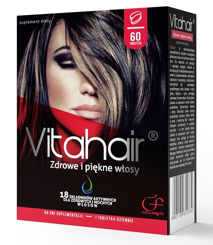 Vitahair to wieloskładnikowy specjalistyczny preparat szczególnie polecany w celu wzmocnienia włosów oraz dla wsparcia ich kondycji i ogólnego wyglądu. Vitahair to kompozycja 18 składników aktywnych: witamin, biopierwiastków i ekstraktów roślinnych naturalnego pochodzenia, korzystnych dla  zachowania prawidłowego stanu włosów i skóry głowy. Biotyna i cynk, pomagają zachować zdrowe włosy i skórę głowy. Zawarta w preparacie miedź wspiera prawidłową pigmentację włosów i skóry. Obecność cynku sprzyja prawidłowej syntezie białek włosa, a wraz z witaminą B12 i kwasem foliowym uczestniczy w podziale komórek – w tym cebulki włosa. Zawarte w preparacie cynk, miedź, mangan oraz wyciąg ze skrzypu wspierają ochronę przed wolnymi rodnikami i stresem oksydacyjnym. Wyciągi z bambusa i skrzypu stanowią źródło krzemionki, dzięki czemu przyczyniają się do wzmocnienia włosów oraz wspierają ich wzrost.