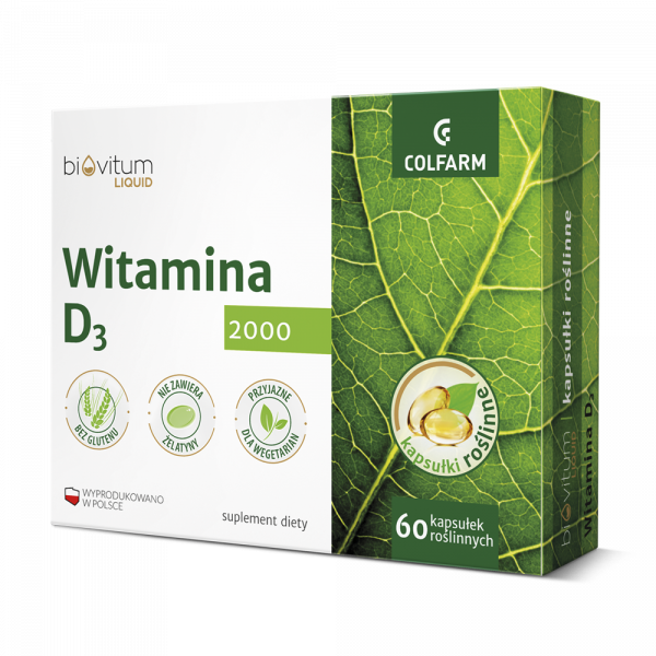 Naturalne kapsułki roślinne Biovitum Liquid D3 zawierają przyjazną dla wegetarian witaminę D zawieszoną w oleju lnianym. Witamina D wspiera zdrowie i utrzymanie odpowiedniej budowy kości i zębów. Suplement wspiera prawidłową pracę mięśni i układu odpornościowego. Witamina D przyczynia się do prawidłowego wchłaniania wapnia oraz fosforu. Ponadto witamina D uczestniczy w procesie podziału komórek.