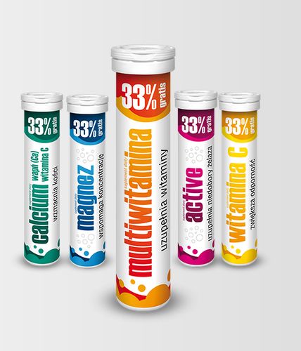 Witamina C to suplement diety w postaci tabletek musujących o przyjemnym, cytrynowym smaku. Dzięki zawartości witaminy C preparat pomaga w produkcji kolagenu w celu zapewnienia prawidłowego funkcjonowania naczyń krwionośnych, kości, chrząstki, dziąseł, skóry oraz zębów, wspiera metabolizm energetyczny i funkcjonowanie układu nerwowego oraz odpornościowego, przyczynia się do utrzymania funkcji psychologicznych na właściwym poziomie, a także do zmniejszenia uczucia zmęczenia i znużenia.