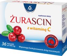 Żurascin jest preparatem zawierającym ekstrakt z żurawin i witaminę C wspomagające pracę układu moczowego. Antocyjany zawarte w ekstrakcie z żurawin są przeciw- utleniaczami odpowiedzialnymi za usuwanie z organizmu wolnych rodników, które uszkadzają komórki. Ekstrakt z żurawin pomaga hamować przyczepianie się bakterii E. coli do błon śluzowych układu moczowego i ułatwia ich wypłukiwanie.